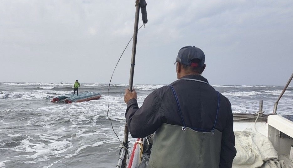 【記者蘇峯毅/雲林報導】今(22)日下午1時許,許厝寮西北堤外海域傳來一場驚險救援行動。許厝寮安檢所接獲通報,膠筏「進O號」因海象惡劣翻覆,一名黃姓漁民受困船上,情況危急。在多方合作下,救援隊於下午2時45分順利將黃姓漁民救起,未造成任何傷亡。