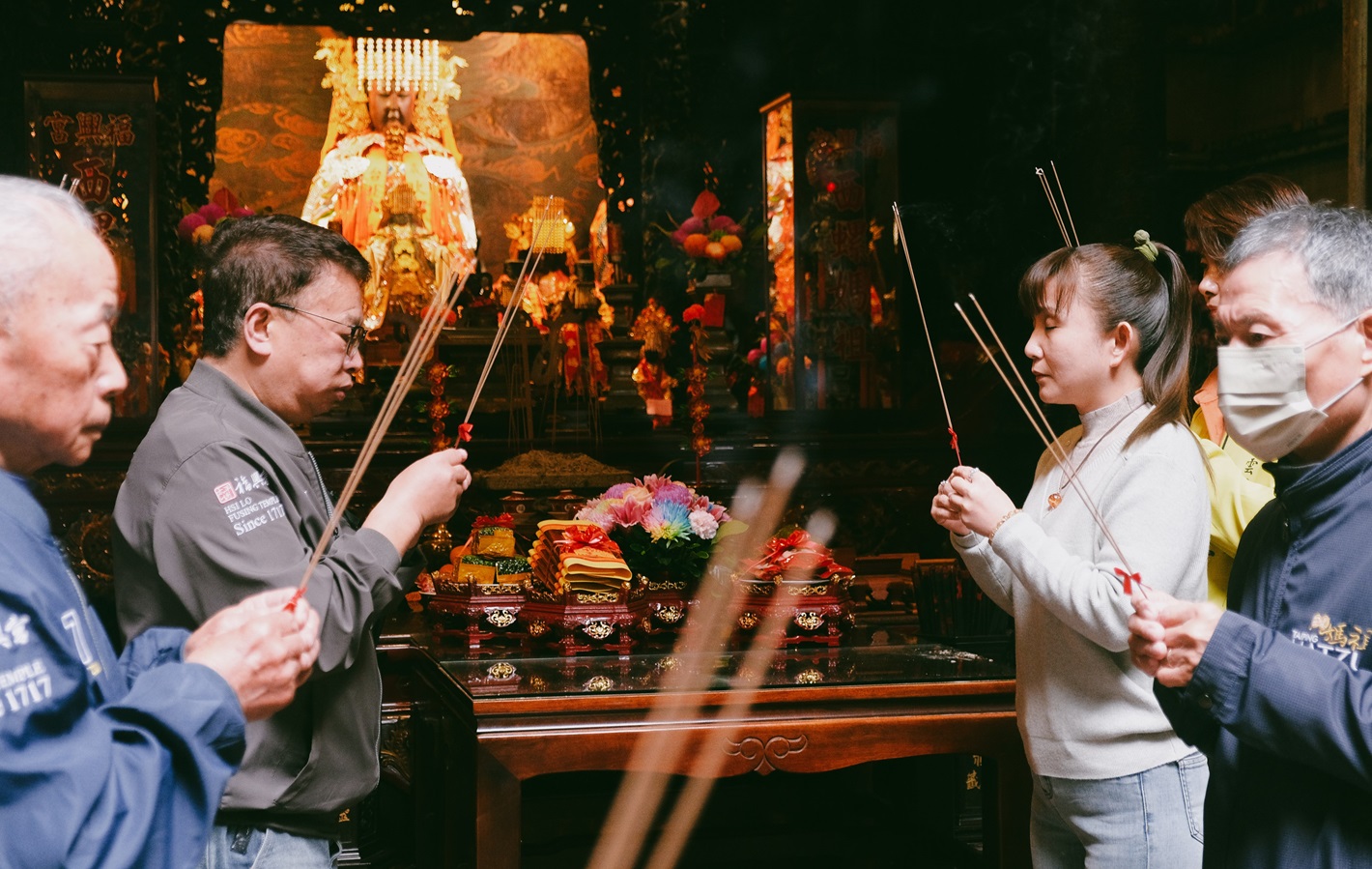 董事長楊文鐘與信眾熱情互動,場面洋溢著濃濃的年節氛圍。