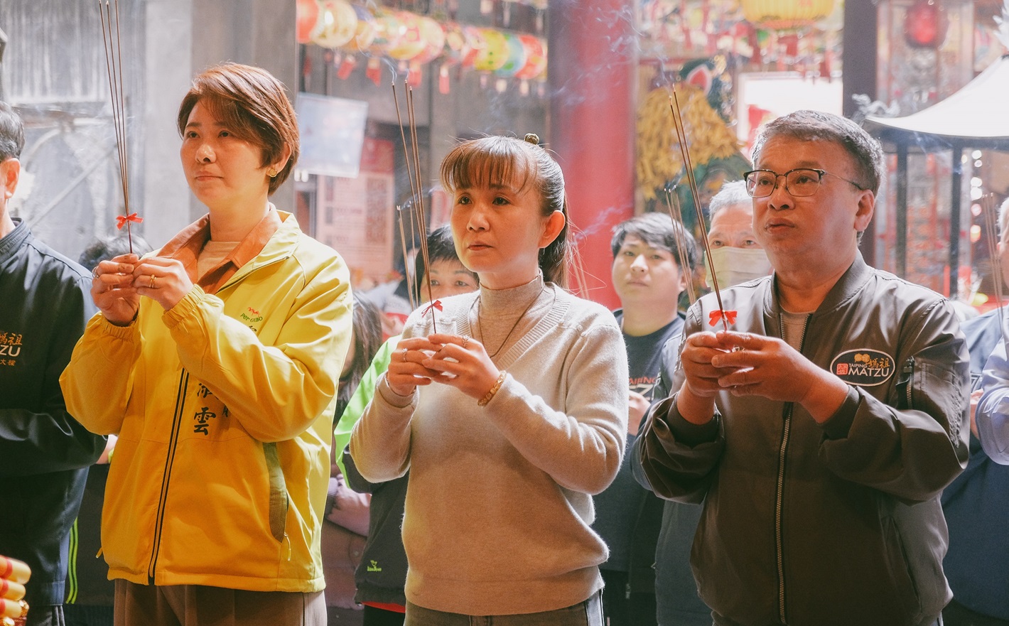 送神祭拜由西螺鎮長廖秋萍(中)、縣議員游淑雲(左)與董事長楊文鐘一同,儀式莊嚴肅穆,吸引了眾多信眾前來參與,共同為新年的到來祈福迎祥。(圖/記者蘇峯毅攝)