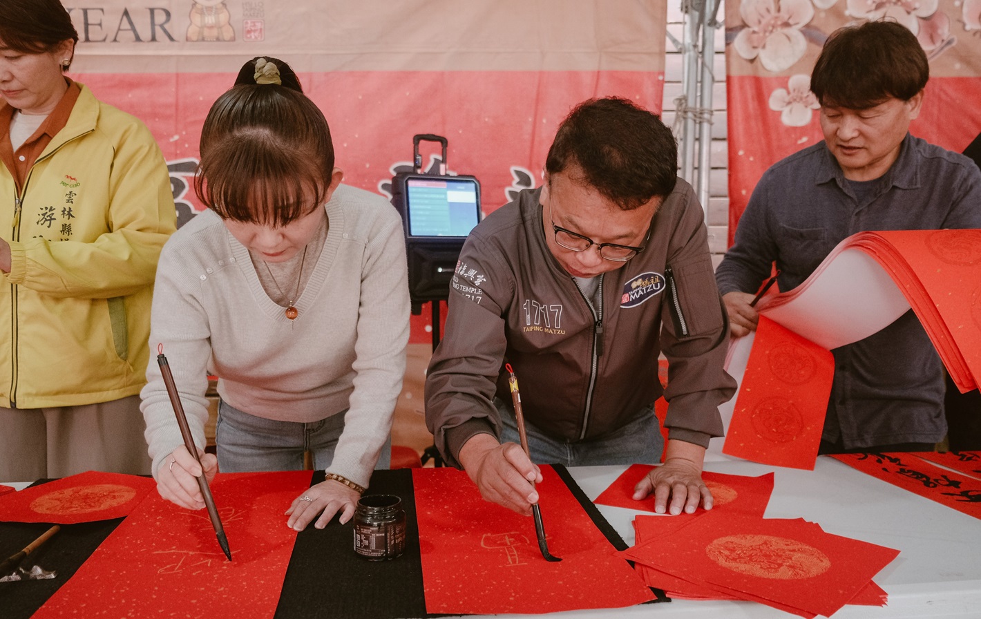 活動當天,西螺鎮長廖秋萍、雲林縣議員游淑雲等地方民代與福興宮董事長楊文鐘一同出席,親自體驗寫春聯,與信眾熱情互動,場面洋溢著濃濃的年節氛圍。廟埕上數萬顆紅燈籠高高掛起,與現場的笑聲與祝福交織出一幅溫馨熱鬧的景象。