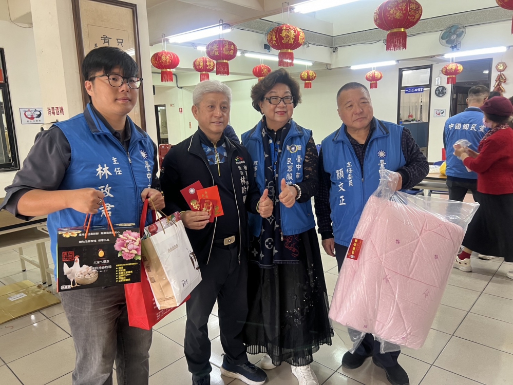 歡樂過年氣氛下,在社會的角落裡,也有一群正愁著不知道如何過好年的弱勢邊緣戶,臺中市民眾服務社長期關懷關心弱勢戶,辦理「寒冬送暖」活動,由郭元瑾理事長拋磚引玉,注入社會資源一起響應活動,現場贈棉被、惠中寺蘿蔔糕2盒、有機蛋1盒、人蔘烏骨雞1包、鹹豬肉及紅棗、枸杞等,郭元瑾理事長現場還加碼包紅包,每人新台幣3000元,讓這些弱勢家庭也能幸福過好年。