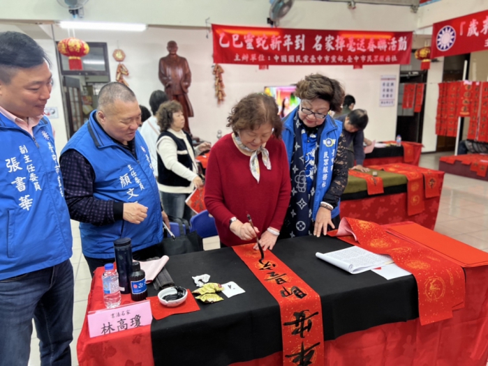 【記者張原銘、張皓傑台中報導】龍年即將結束,家家戶戶準備迎接新蛇年到來,傳統手寫春聯最能傳遞各家文化韻味,因此,臺中市民眾服務社特於24日辦理「迎新揮毫送春聯暨聯合公益慈善活動」,除了邀請知名書法家提供不同字體的客製化手寫春聯外,還藉由引進社會資源注入暖心公益活動,關懷弱勢邊緣戶,本著人飢己飢的精神,幫助社會上弱勢的家庭。