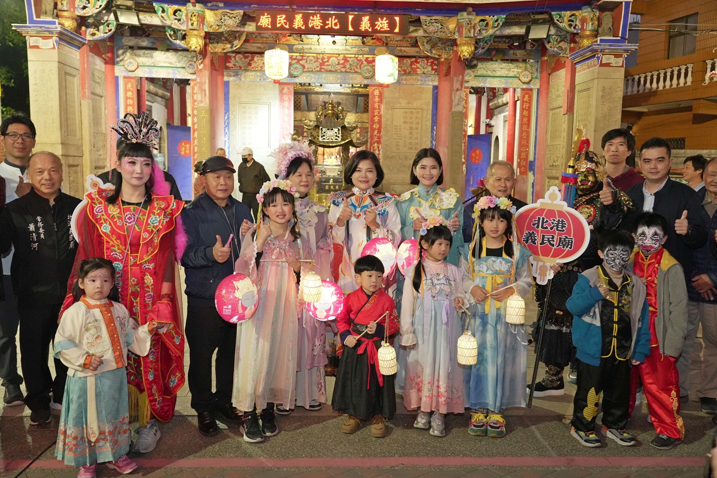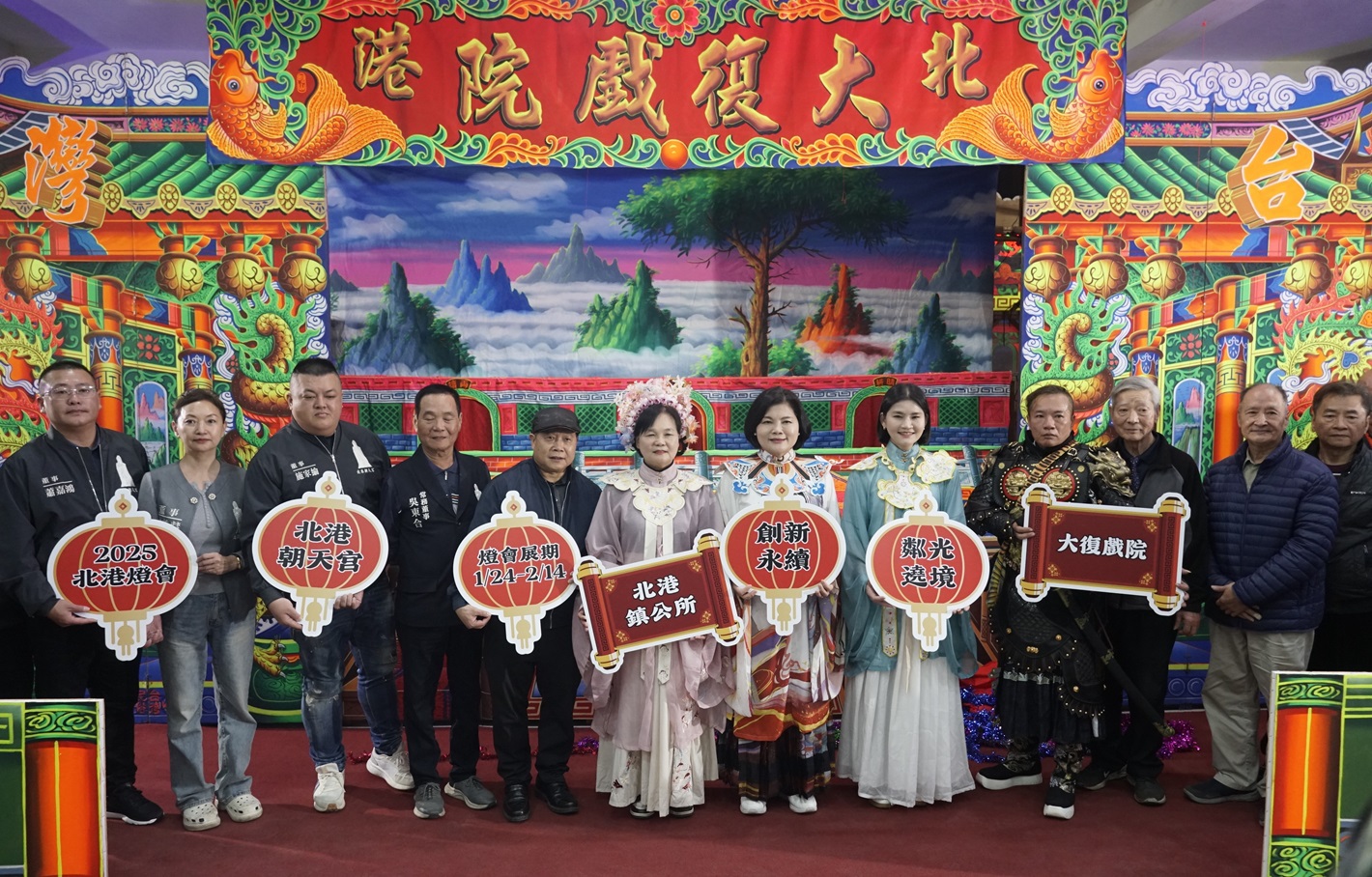 【記者蘇峯毅/雲林報導】2025北港燈會於1月24日盛大啟幕,首波亮燈活動以「粼光遶境」為主題,雲林縣長張麗善、北港鎮長蕭美文及文化觀光處長陳璧君以「三位仙女下凡」的創意扮演形式,為燈會拉開序幕。他們依次點亮老街巷弄、義民廟與北港鎮公所燈區,並為復古風情濃厚的大復戲院舉行戲台揭牌儀式,吸引大量遊客感受北港的文化魅力與歷史氛圍。
