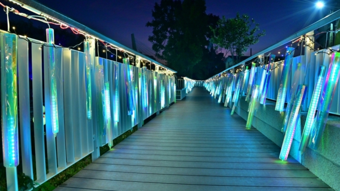 而軟埤仔溪則在葫蘆墩公園第三區以「日光廊道」作為迎賓入口,並以「繽紛水岸」與「魚你相遇」等主題燈飾,展現豐原陽光明媚與潔淨水源的自然之美,讓人沉浸於大自然和諧健康的氛圍中。