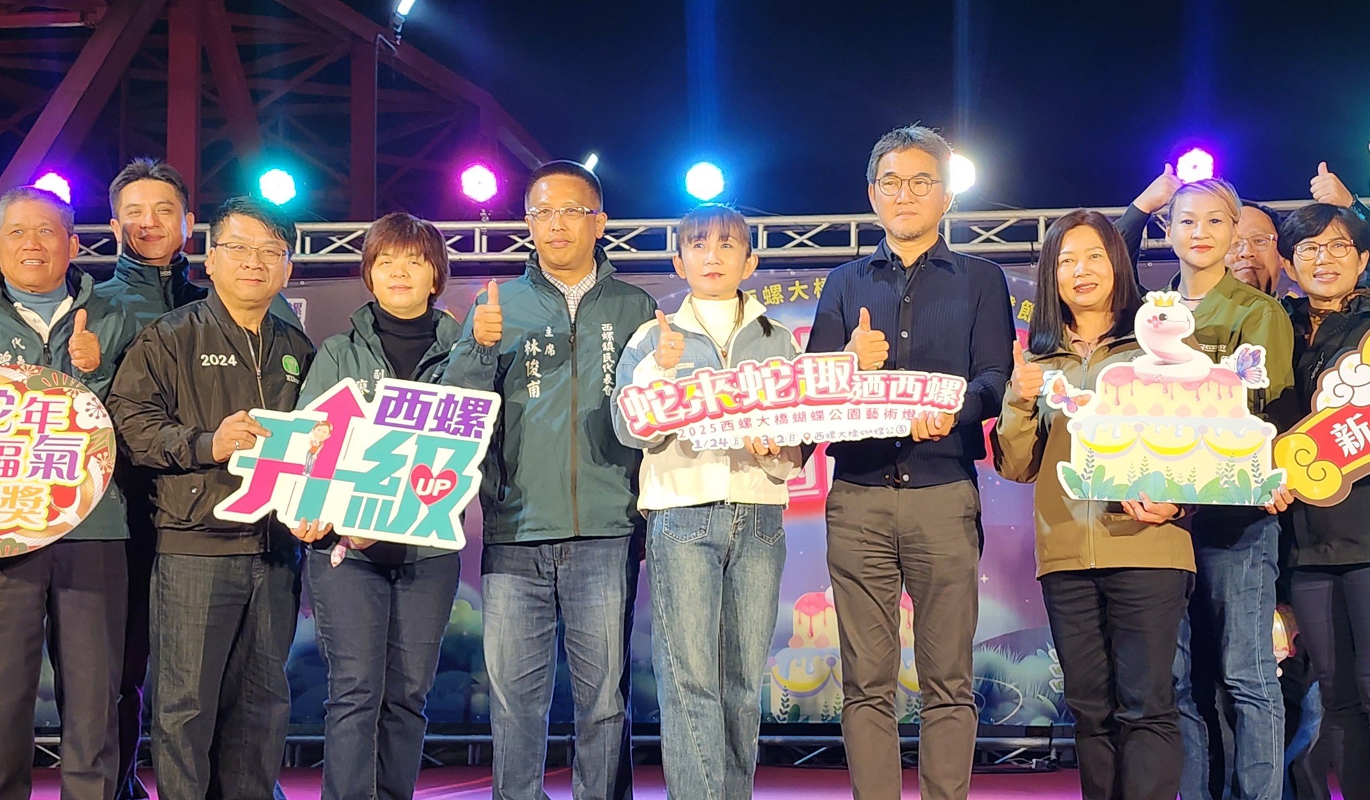 西螺鎮鎮長廖秋萍與立委劉建國等政要邀請全國信眾與國際旅客於乙巳年新春期間到西螺賞燈。(圖/記者蘇峯毅攝)