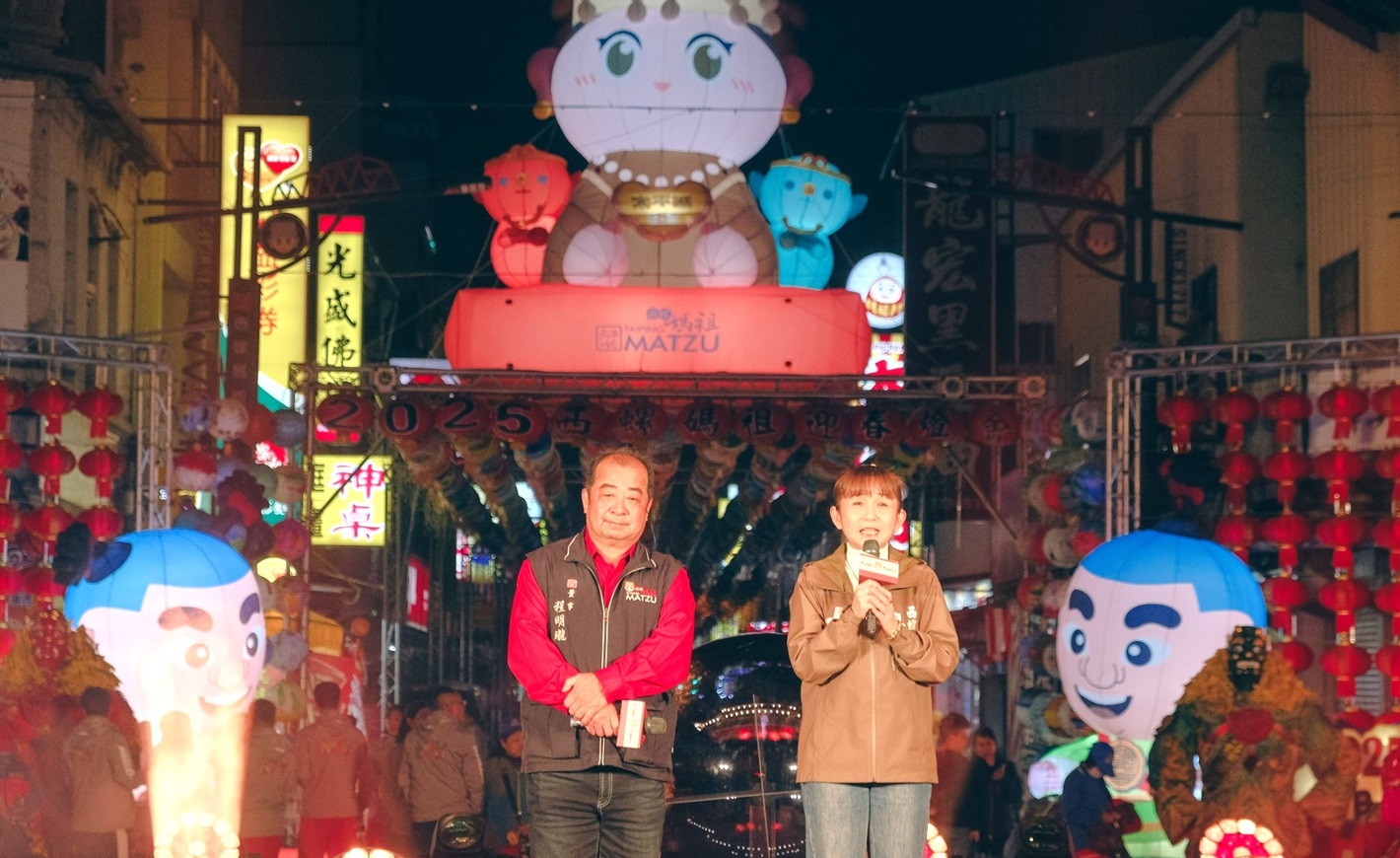 西螺鎮鎮長廖秋萍與福興宮董事長楊文鐘誠摯邀請全國信眾與國際旅客於乙巳年新春期間到西螺賞燈。(圖/記者蘇峯毅攝)