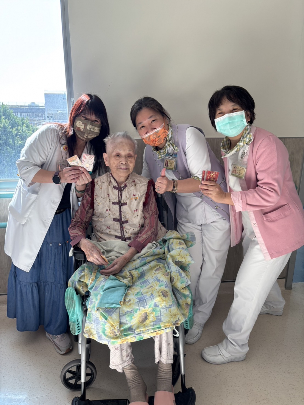 副院長林紹雯親自送上賀年的小龍紅包,祝福長輩們「蛇麼都順心、蛇麼都開心、健健康康、好運旺旺來!」長輩們開心接下小紅包,提前感受過年氣氛,也期望臺中醫院可以繼續守護大家的健康。