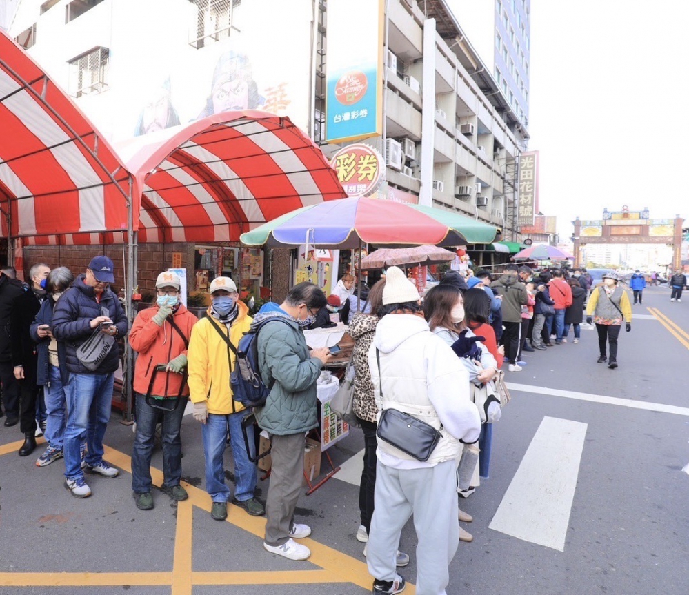 29日一早許多民眾不畏寒冷到宮廟排隊討吉利,領小紅包人潮擠滿廟埕,都希望能討個好彩頭,盧市長現場也與民眾親切合影,互道新年恭喜。除了南天宮有民眾排隊超過24小時搶頭香,朝聖宮也有位高齡102歲的人瑞阿公也來領取小紅包,熱情感染在場所有人。