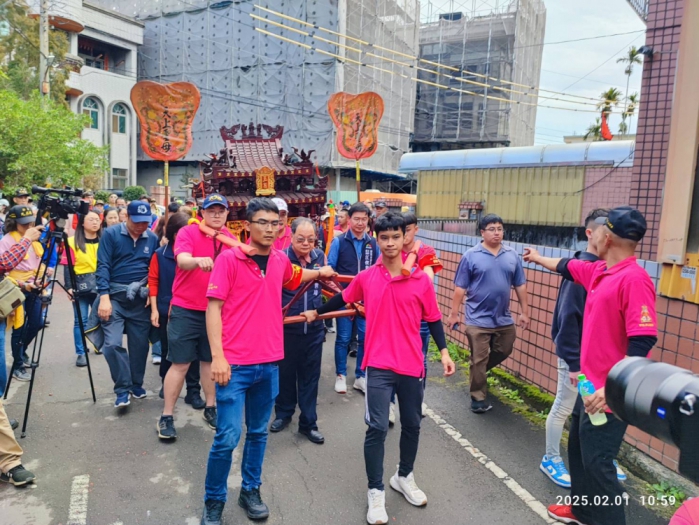吳世瑋表示,今年在農曆初四由輪值年庄頭「山頂」(中正里)展開遶境遊庄,下一年值年庄是「畚箕湖」(月湖里),2日大年初五值年庄頭會恭迎九庄媽祖進駐「畚箕湖」(月湖里)爐主家宅供奉。