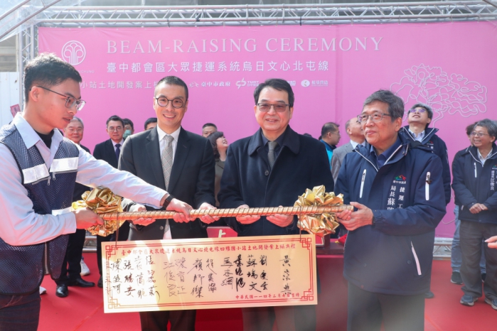 捷運局長蘇瑞文說明,台中捷運綠線通車後,運量年年穩定成長,接棒的第二條捷運藍線興建在即,迎來台中未來30年捷運興建的高峰期,今日上梁的捷運綠線四維國小G5站共構大樓整體主結構已完成,是台中第一座商辦大樓共構開發案,透過公私部門的相互合作,創造地主、機關、投資人三贏局面。