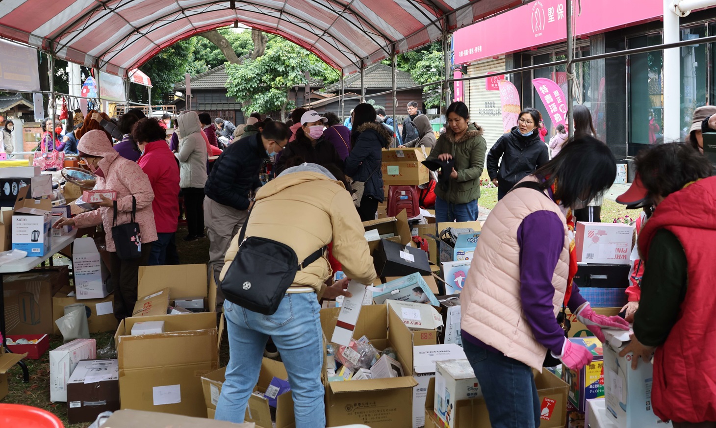 很多民眾不畏天寒 響應撿便宜做公益-家扶義賣會活動。