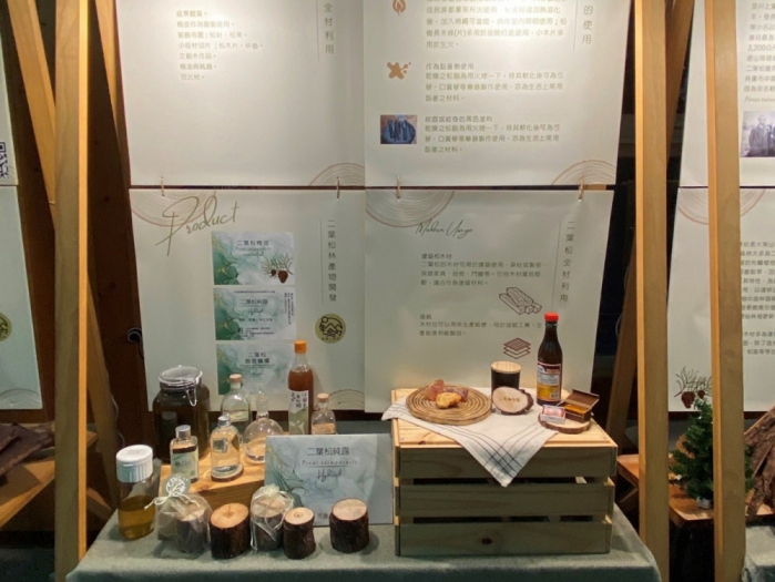 為讓民眾了解臺灣二葉松全材利用的多元價值,林業保育署臺中分署特別規劃「臺灣二葉松木質與非木質利用靜態展」,展出一系列創新產品,包括:堅韌耐用的規格建材、散發淡雅木質香氣的松脂蠟燭、擁有森林療癒氣息的精油純露,以及充滿松木香韻、紋路的杯墊與書籤等,透過視覺、觸覺、嗅覺等,親身體驗豐富的感受。此外,展覽現場更設置臺灣消失近50年的「松脂採集法」模型,重現傳統林業技術,讓民眾了解昔日松脂利用的文化歷史。