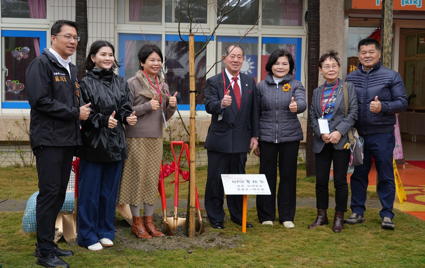日本育櫻會與縣長張麗善、議員蘇俊豪、麥寮鄉長許忠富等人種植櫻花樹。