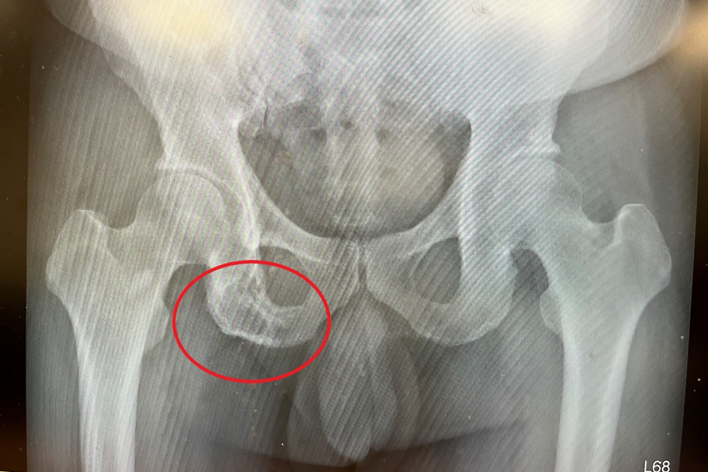白先生以為工作勞累才導致臀部疼痛,只去做復健和民俗整復,痛到無法忍受才到醫院就醫。白先生電腦斷層檢查影像發現坐骨骨頭被侵蝕的病灶,轉診到台中慈濟醫院血液腫瘤科。