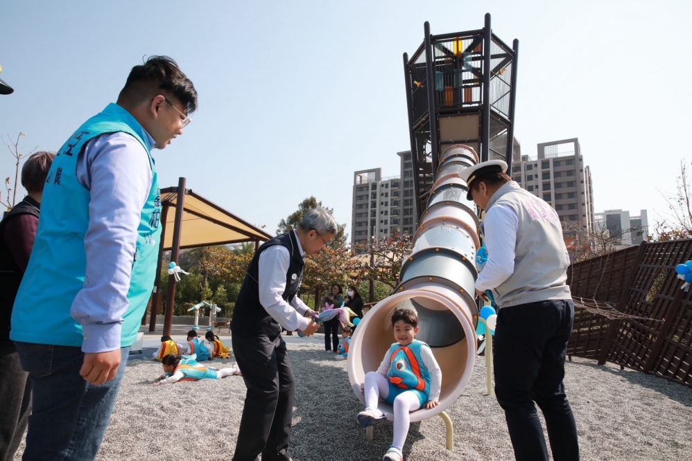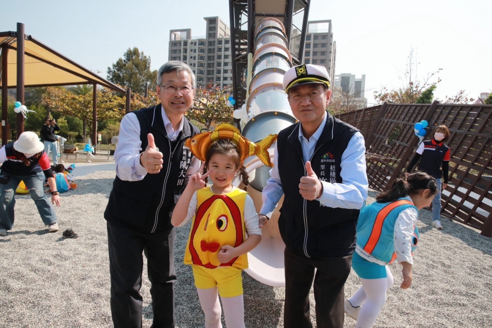 【記者楊川欽台中報導】台中市長盧秀燕重視親子樂活空間與共融公園發展,積極推動「台中美樂地計畫」,並強調區域均衡發展。市府建設局與民間基金會攜手合作,斥資近3000萬元,在梧棲區漁寮運動公園打造「航海主題特色遊戲場」。17日舉行完工啟用典禮,由建設局長陳大田代表主持並表示,遊戲場設計廣納各方意見,透過地方說明會與參與式設計工作坊,融合在地特色,打造全天候可使用的共融公園,為市民提供更優質的休憩空間。