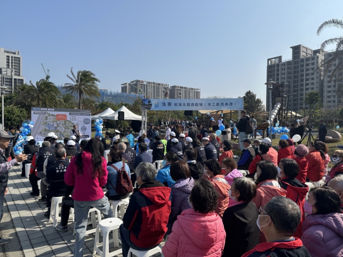 梧棲漁寮公園「航海主題遊戲場」啟用典禮,市議員陳廷秀、王立任、梧棲區長溫國宏、台中市動物保護防疫處長林儒良、梧棲戶政事務所主任巫金玲及地方里民長皆親自到場參與。