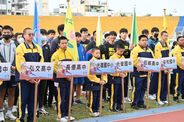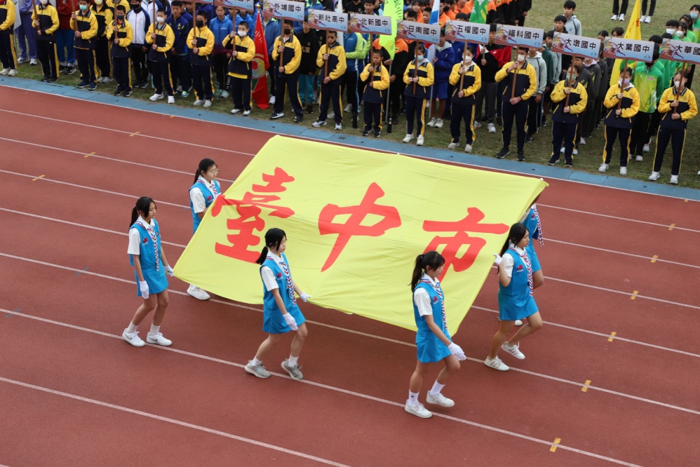 教育局指出,開幕典禮在沙鹿國中童軍團旗手高舉台中市旗進場時推上高潮,展現選手們的熱血團結精神。