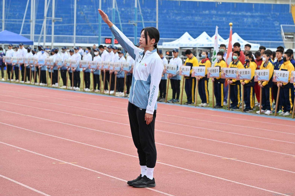 大甲高中田徑選手楊玫玫擔任運動員宣誓代表,楊同學征戰國內外賽場,在2023巴西世界中學生運動會U18女子組100公尺榮獲第一名。