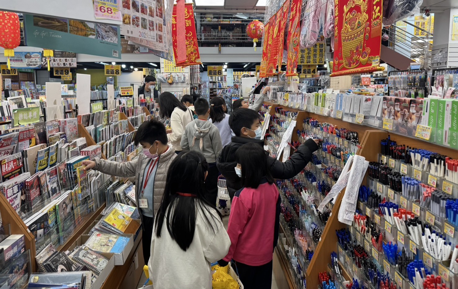 來自市區各國小約165名弱勢家庭學童,在家長及老師的陪同下,興奮地走進書局,挑選自己喜愛的文具與書籍。(圖/記者蘇峯毅翻攝)