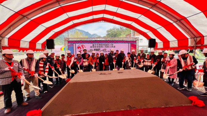 【記者林獻元台中報導】位於台中市和平區達觀里大安溪畔的「博屋瑪國小」93年因艾利颱風侵襲,導致學校操場全數沖毀,山區偏鄉建設事渉複雜,市府教育局排除萬難完成所有準備工作,終於迎來21日新建操場工程的開工典禮,今年底完工後將提供學童優質運動場域,也為當地部落族人帶來舒適的休閒育樂空間。