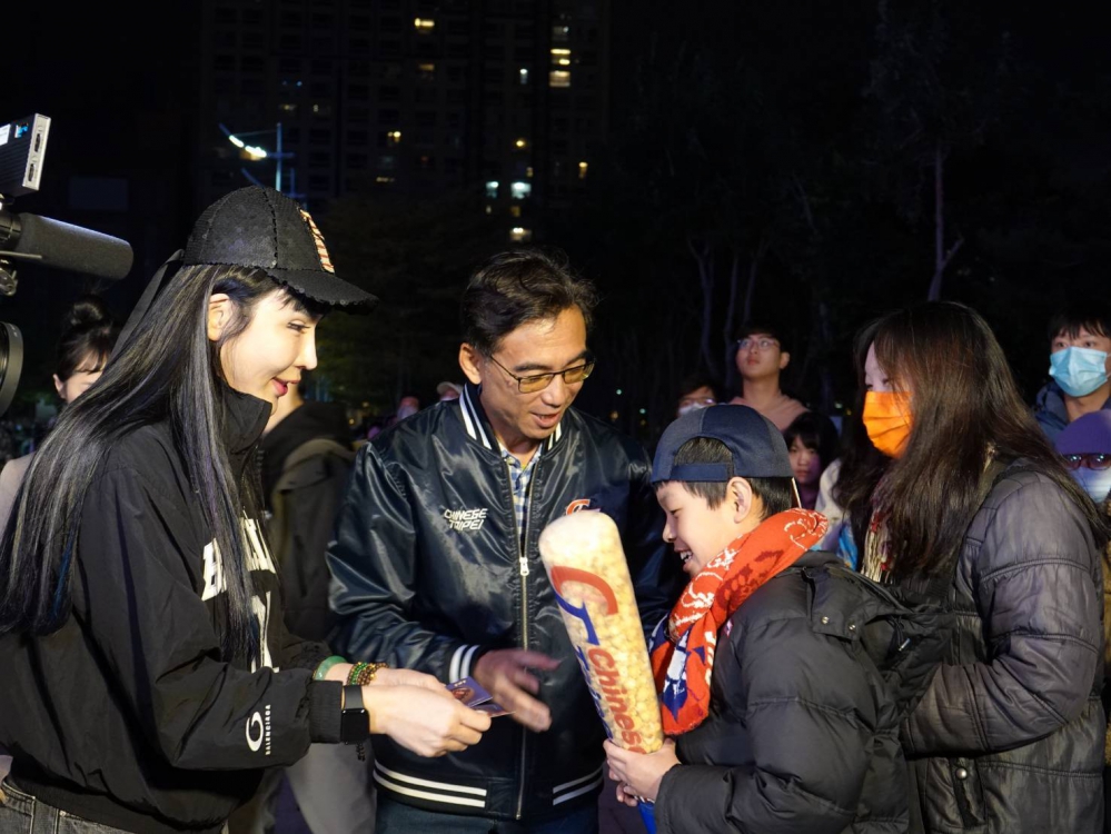 22日府前廣場直播熱鬧非凡,感謝在地企業「屋馬餐飲集團」贊助限量球棒造型爆米花,明日直播活動將持續進行,並持續發送應援好禮,達美樂pizza也加碼贊助pizza免費兌換卷,此次局間更舉行抽獎活動,每場賽事抽出官方紀念球及證件套,現場加油氣氛熱烈。