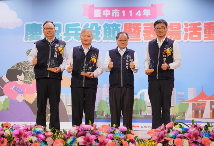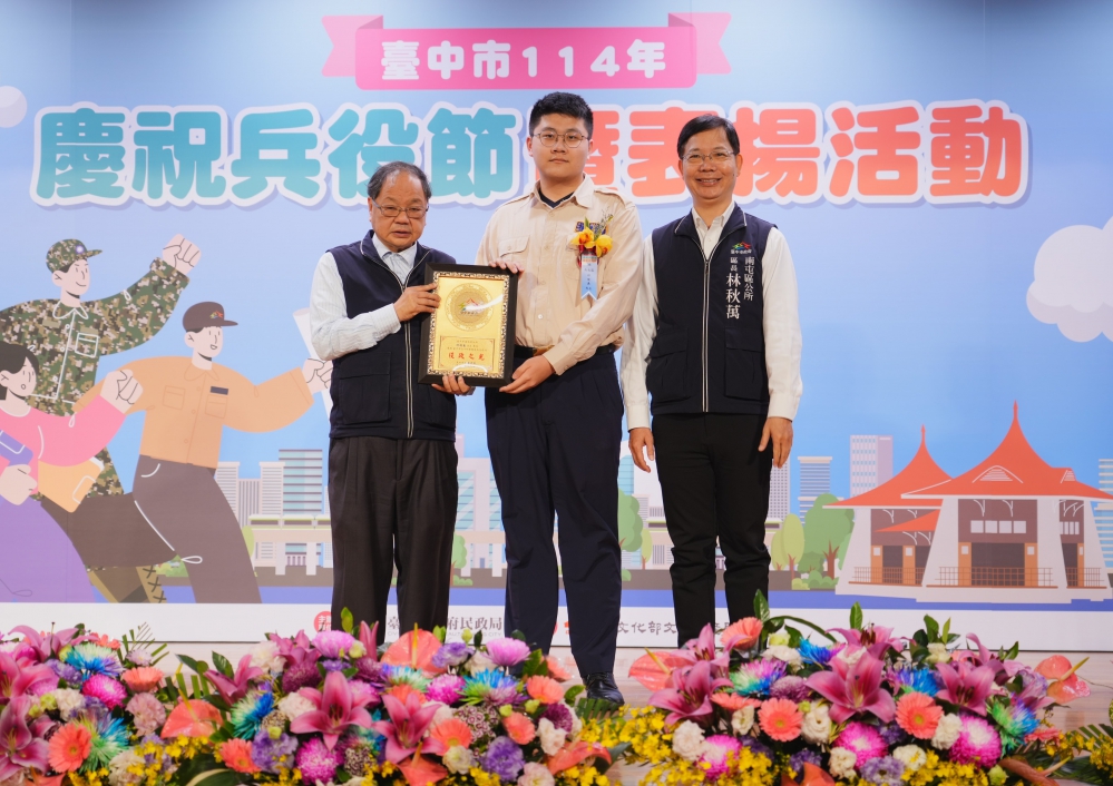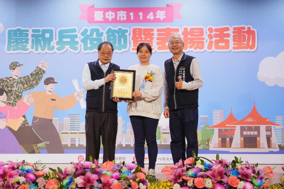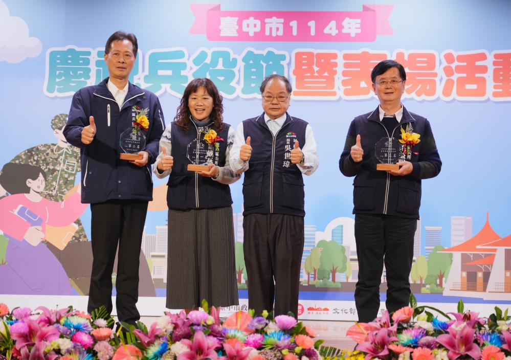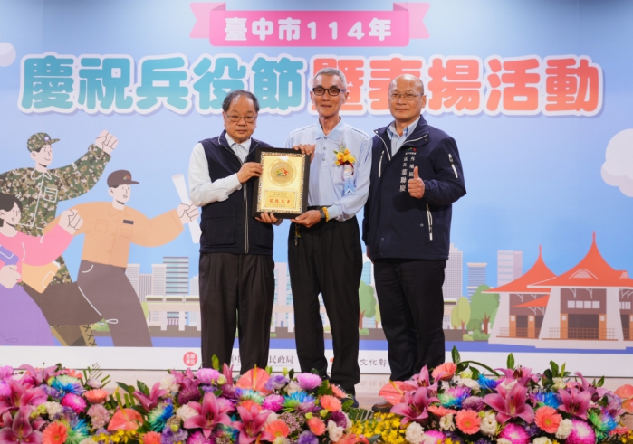 【記者林獻元台中報導】3月1日兵役節將至,為肯定役政同仁的辛勞奉獻,台中市政府民政局24日在文化部文化資產園區舉辦「台中市114年慶祝兵役節暨表揚活動」,公開表揚10區績優、創新服務單位,以及19位績優役政人員及替代役男。民政局長吳世瑋代表出席頒獎表示,台中市役政工作表現優異,近三年連續榮獲內政部役政業務考評「特優」,感謝所有役政同仁的用心及努力,並期勉大家持續精進,提供市民更優質、便捷的役政服務。
