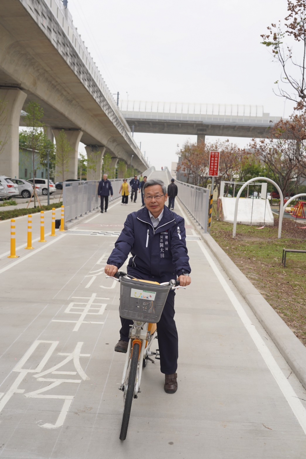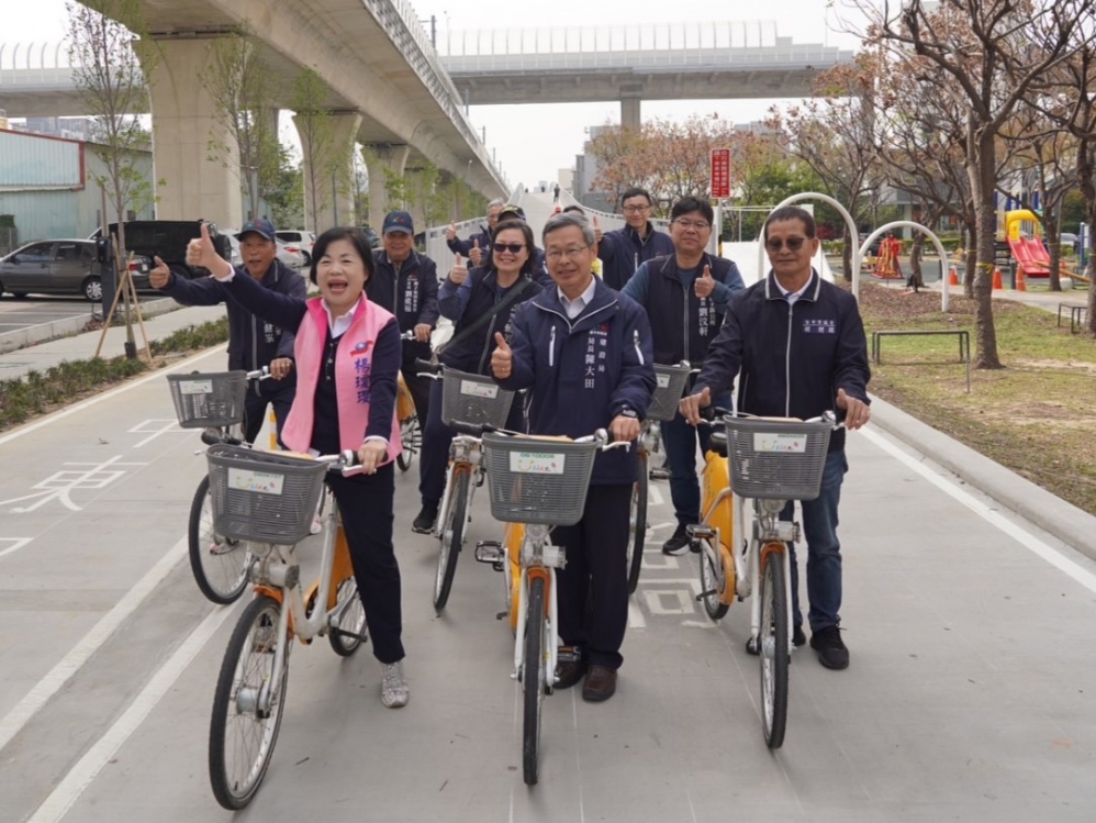 建設局長陳大田日前與立法委員楊瓊瓔、市議員賴朝國、潭子區長劉汶軒、潭子區福仁里長游豐瑋、頭家東里長劉進褔、嘉仁里長林瑞文、甘蔗里長黃正堯、潭北里長林俊堂、潭陽里長楊仲傑、頭家里長黃聖明、潭秀里長陳健峯、家福里長賴美芳等前往現場視察民眾使用情況,並邀請市民朋友多加利用及騎自行車暢遊綠空廊道,親身感受台中慢活城市的魅力。