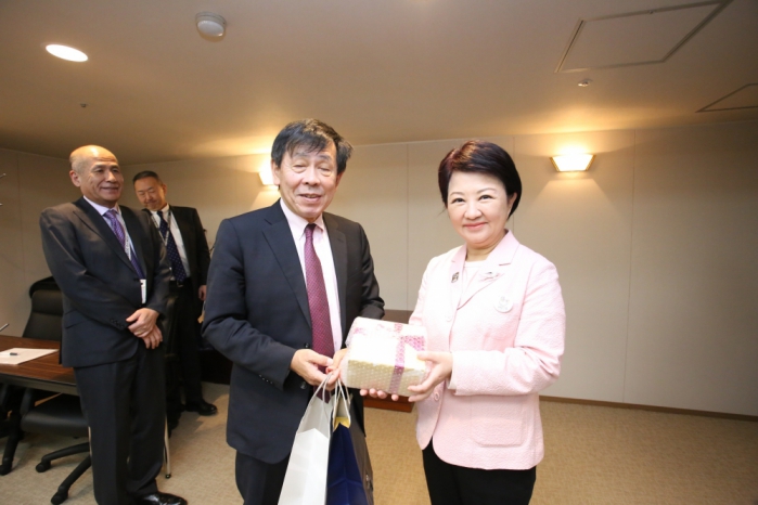 中市府指出,小池知事28日在議會期間百忙中,仍撥冗接待盧市長,更親自為盧市長別上由東京主辦的2025年「聽障奧運」紀念胸章,並輕拍市長手臂,溫柔地說:「甘巴爹!」兩人相知相惜,雖首次見面,但互動相當溫馨熱絡。