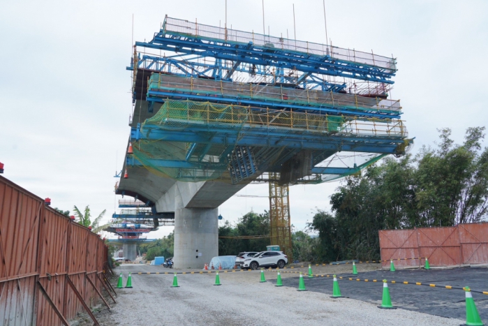 建設局長陳大田表示,市府建設團隊在缺工、缺料等挑戰下,仍全力推動「東豐快速道路工程」。其中,第3標工程銜接石岡至已完成的大甲溪橋梁段及東勢段,目前墩柱已成形,並安裝工作車展開橋面板施工,預計今年4月與舊橋接合,屆時,地方長年記憶中的斷橋將成為歷史,而第3標也將於115年完工搶先通車,進一步改善石岡至東勢的交通便捷性。