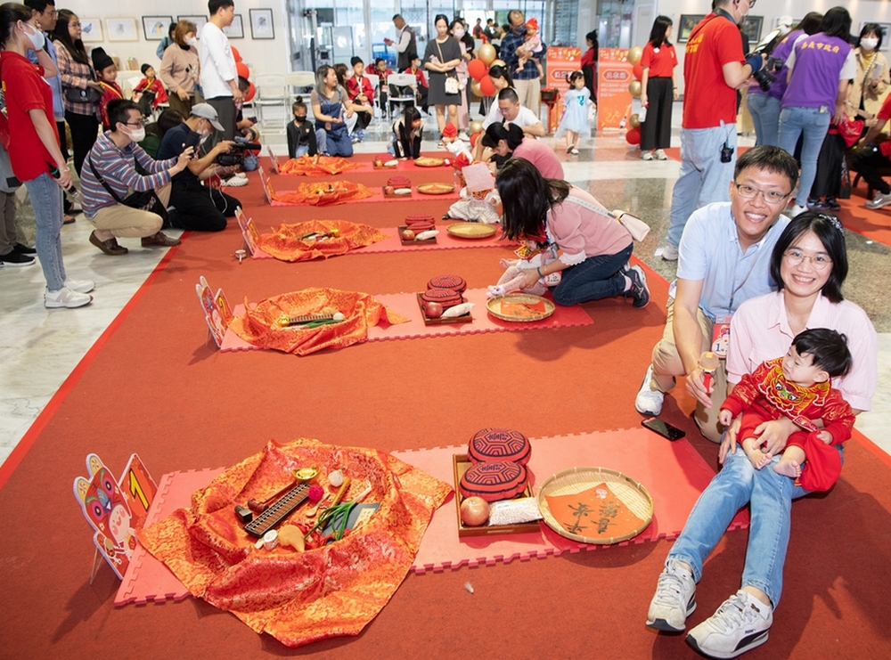 嘉義市古禮抓週循古禮慎重進行,秉持讓文化傳承,更突顯家庭的價值。(圖/ 遊Love園親子館提供)