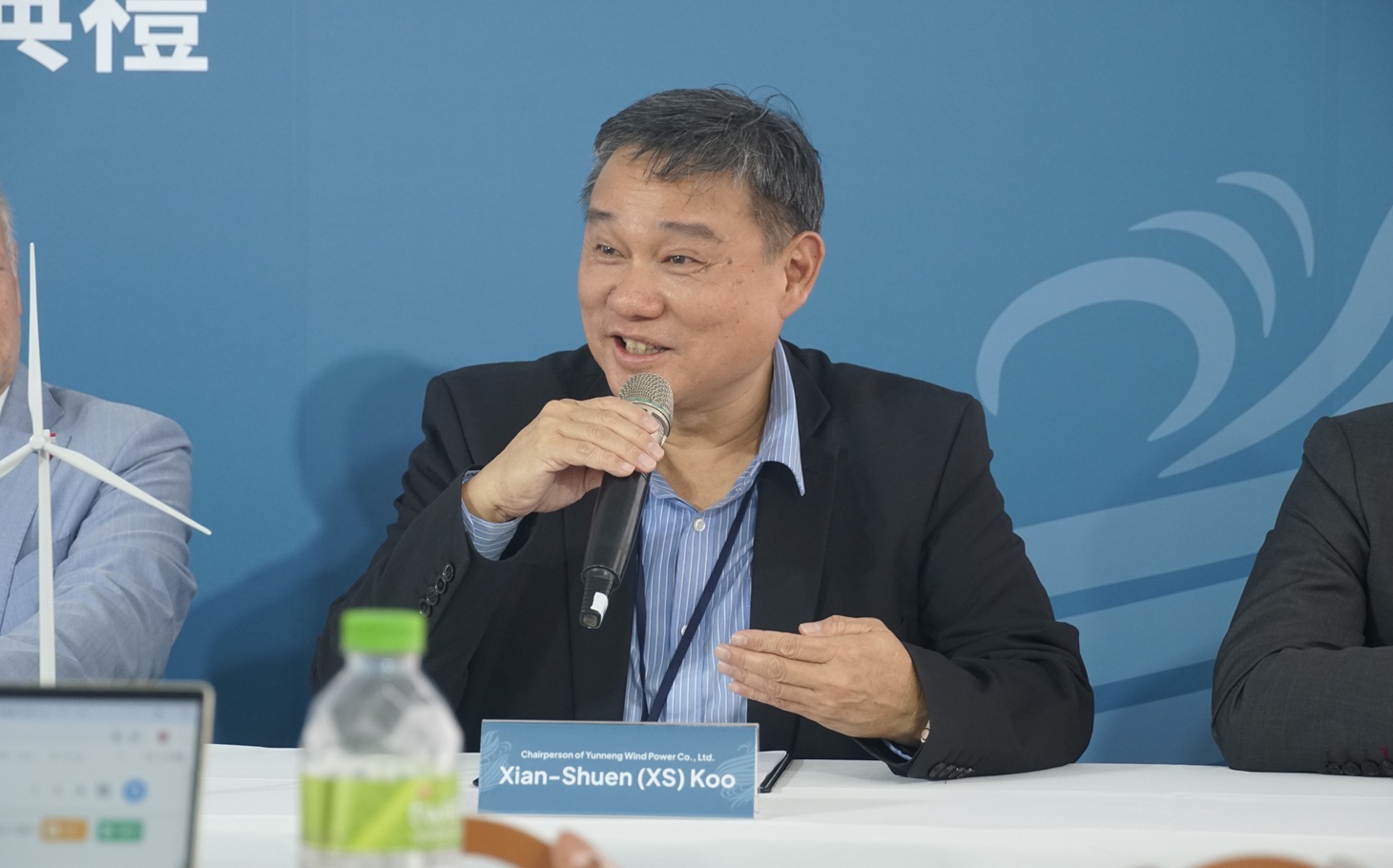 允能董事長顧賢鉉表示,這次風場的成功啟用,是跨國企業與台灣政府密切合作的成果,展現出台灣在國際再生能源市場的競爭力。(圖/記者蘇峯毅攝)