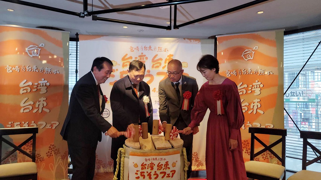 ▲台東縣政府攜手日本南九州地區18家特色餐廳辦理「台東祭」活動,於宮崎縣「みやざき晴マチ 肉バル食堂」舉辦啟動儀式
