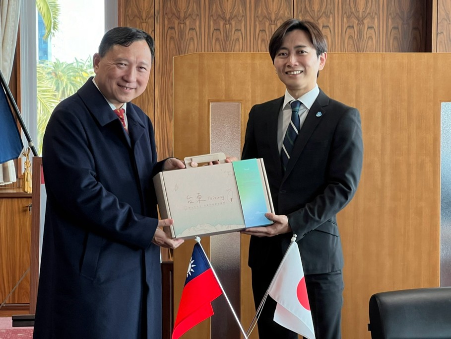 ▲台東縣副縣長王志輝拜會日本宮崎市市長清山知憲,並致贈台東特色精品