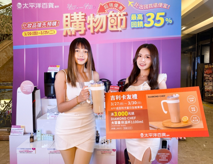 【記者林獻元台中報導】豐原太平洋百貨上半年度最盛大的「購物節」,即將於3月27日(四)至4月23日(三)熱烈開打。其中,化妝品搶先預購,3月20日至25日(二)率先推出化妝品專屬單筆滿3000送300,消費滿15000再加碼贈送500元抵用券。此外,預購期間更祭出五檻預購必搶加碼禮,消費達指定門檻即可獲得限量精選品牌家電,再搭配國泰世華信用卡三重回饋,最高回饋達35%,堪稱上半年度最划算的購物良機!