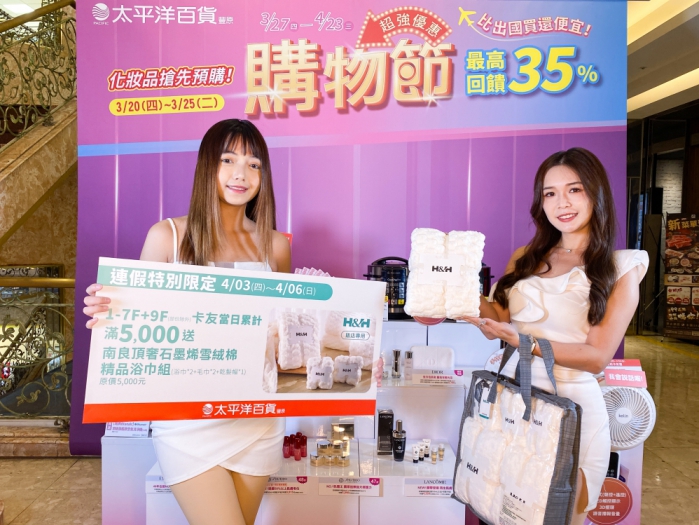 3月27日(四)至3月30(日)更贈送卡友獨享豪禮,全館當日單筆滿3000可獲得「Diamond chef」大容量保溫杯,4月3日(四)至4月6(日)清明連假加碼,滿5000送原價5000元的南良頂奢石墨烯雪絨棉飯店專用精品浴巾組,頂級手感、蓬鬆舒適,絕對值得兌換!優惠力度比出國買還便宜,比台中買更划算!豐原太平洋百貨誠摯邀請大家蒞臨,共同感受購物節購開心的採購盛宴!