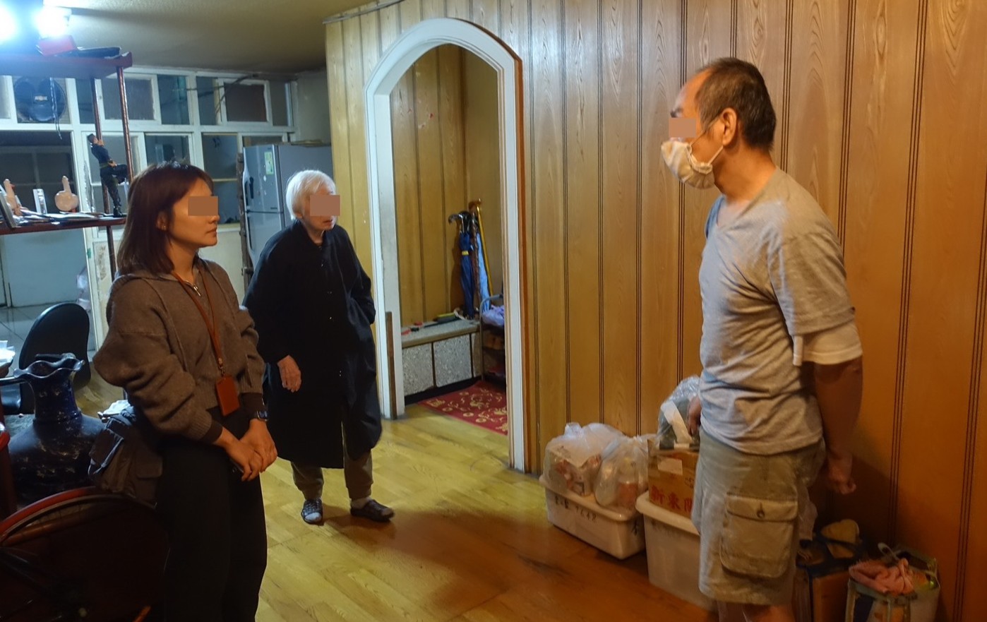 阿宗在雲二監兩名男性同仁全程陪同下,順利回到家裡與母親及家人團圓。