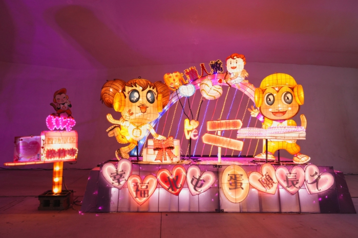 中台灣燈會「樂in LOVE」燈區人氣票選由北屯區公所「幸福北屯 蛋願長久」燈組榮獲評比第1名。 -