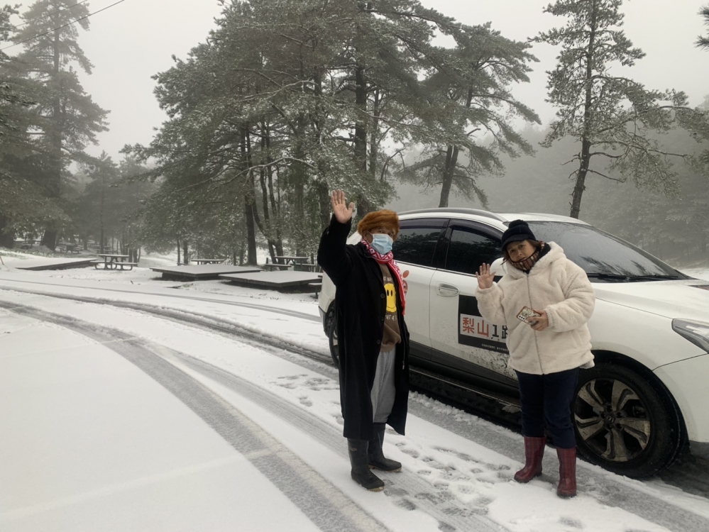 【記者張原銘、張皓傑台中報導】梨山降雪成銀白世界,市府幸福巴士照常發車!受強烈大陸冷氣團影響,台中市梨山地區18日凌晨飄下3月雪,吸引許多民眾上山追雪,當地居民擔心交通受阻,中市府交通局長葉昭甫對此表示,「梨山一路」幸福巴士正常行駛,在片片雪花中化身為雪地公車,接送新佳陽、梨山、松茂、環山等四大部落的民眾。