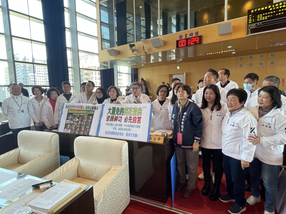 「一切都是盧秀燕的錯,因為民進黨害怕盧秀燕選總統」,黨團議員說,不管大罷免或者誣陷藍白亂刪預算,不管是新光三越案或者洲際棒球場外野視野問題,民進黨議員一定都要扯到盧秀燕市長身上。這邊要向市民報告,以後遇到類似這樣無厘頭的牽扯,大家知道真正的原因,也就不會覺得意外了。