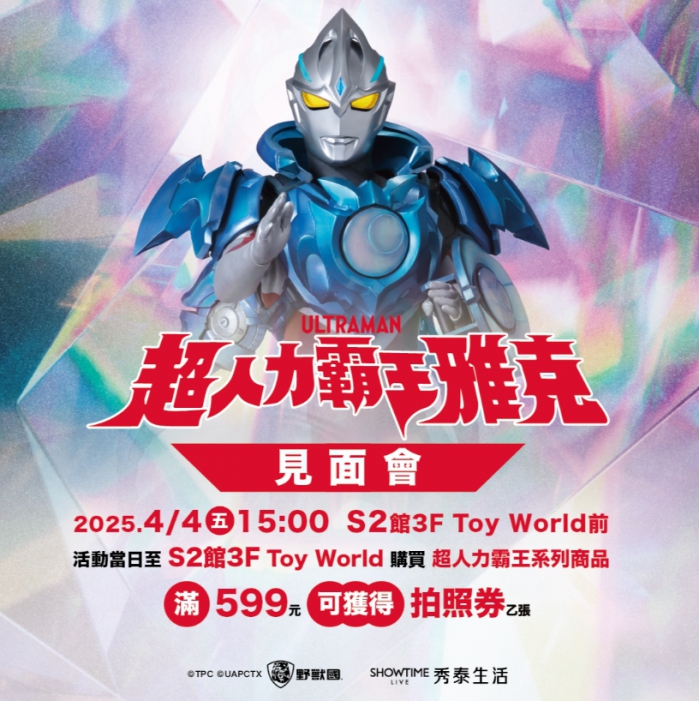 台中文心店將於3/29舉辦「第二屆小老闆市集」,4/5湯姆熊「瘋狂小雞大亂鬥」機台競賽;台中站前店更於4/4推出「超人力霸王雅克見面會」,活動當日至S2館3樓Toy World購買超人力霸王系列商品,滿599元可獲得拍照券乙張,把握機會來追星!台中兩店聯合舉辦「兒童繪畫徵件比賽」,鼓勵小朋友發揮藝術天賦,活動獎項豐富,歡迎踴躍報名,共同展現無限創意與想像力。