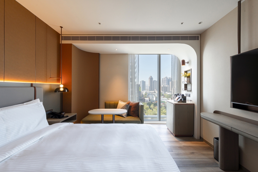 長榮酒店表示,《采寓 halo house》鄰近秋紅谷生態公園,步行即可到達台中大遠百、台中國家歌劇院和Tiger City等地標,外觀設計採用引人注目的六角形玻璃帷幕,內部融合涵洞及圓弧造型,靈感來自鄰近的國家歌劇院,展現建築藝術之美。酒店內裝以輕奢美學為主,空間採用溫暖明亮的美拉德色系,營造自主隨興的氛圍。此外,一樓與知名咖啡館「卡啡那CAFFAINA」合作,為住客提供精緻早餐,讓旅客在優雅環境中開始美好的一天。