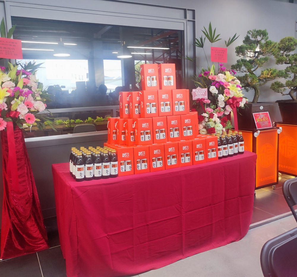 武雄丸大豆醬油新上市發表,嘉義市長黃敏惠與議員陳家平、黃思婷、傅大偉及孫貫志等貴賓出席,活動在擊鼓與舞獅的熱鬧氣氛中展開,馬可家國際有限公司營運長馬德祐介紹新品特色,說明順應日本四季分明氣候,經過300天以上慢速釀造熟成,醬色特濃又風味濃郁,武雄丸大豆醬油成分單純,僅使用非基改日本完整大豆、小麥、鹽天然釀造,武雄丸大豆醬油鹹度足,使用量僅一般醬油的一半即足夠,完整大豆釀造,含油脂的大豆使武雄醬油的鮮味多於坊間醬油。