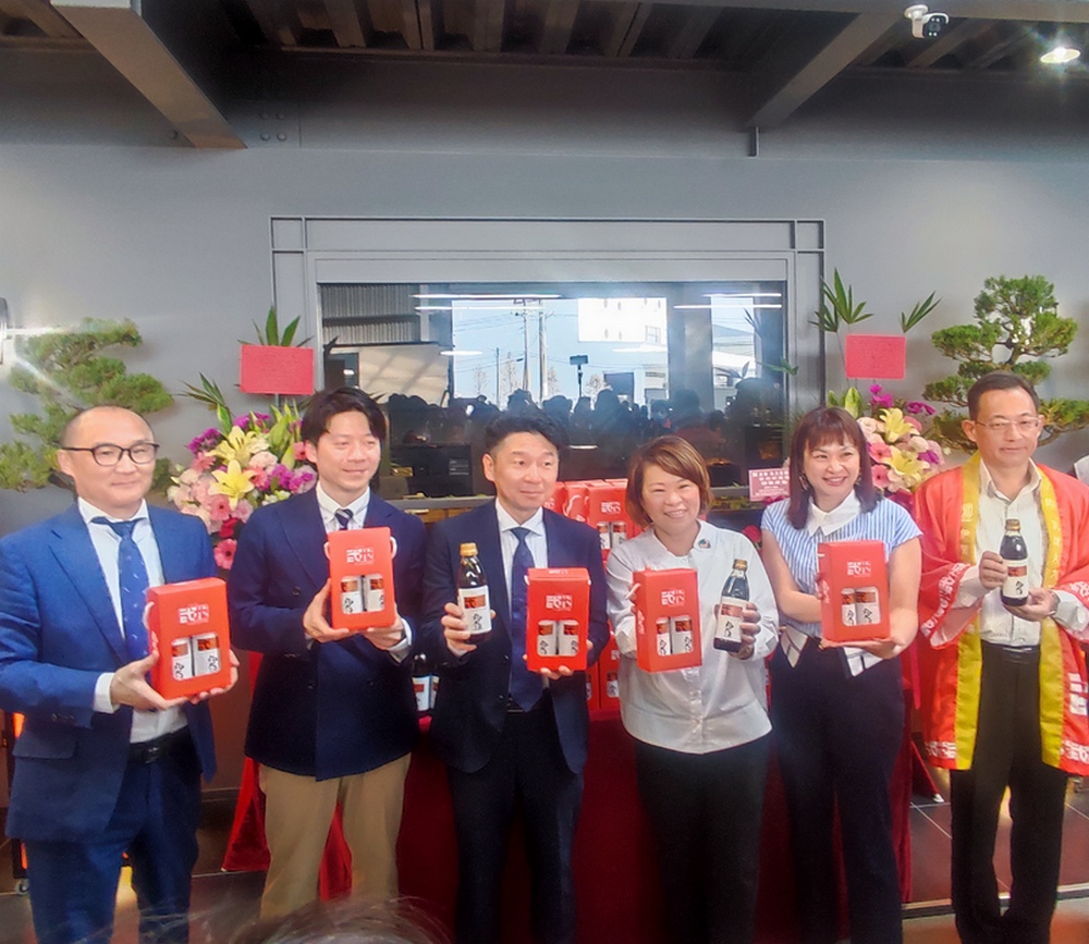 馬可家公司攜手日本三重縣伊賀越百年傳統醬油,台日合作發表武雄丸大豆醬油新品上市。(圖/記者任芳葵攝)