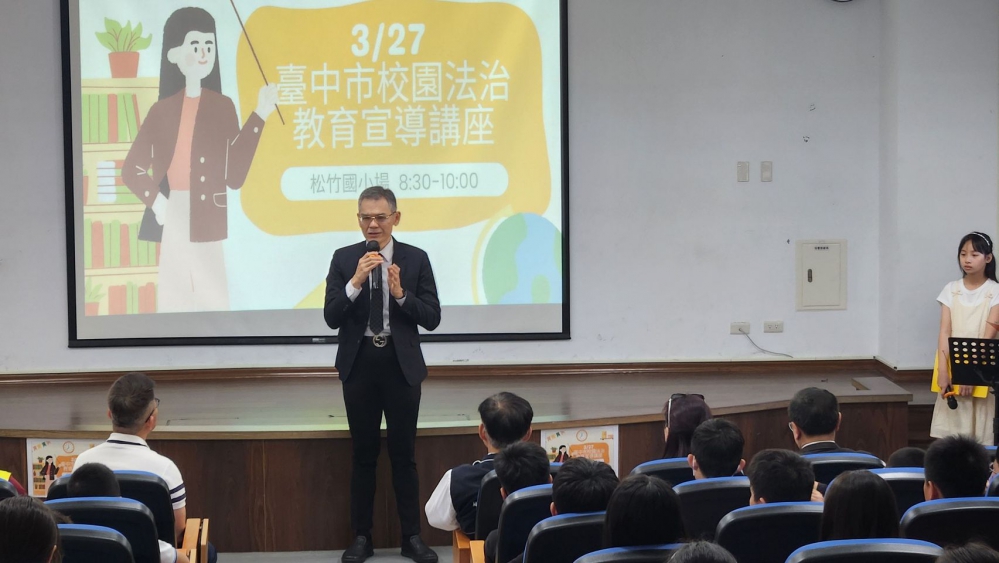 【記者林獻元台中報導】為扎根法治教育,台中市政府教育局持續推動各項法治教育措施,共同營造友善校園環境,今年持續與財團法人法律扶助基金會台中分會合作,針對學生規劃辦理70場次「台中市校園法治教育宣導活動」,27日首場活動在北屯區松竹國小登場,由教育局長蔣偉民與法律扶助基金會台中分會長楊大德律師共同出席,宣示法治教育的重要性與價值。