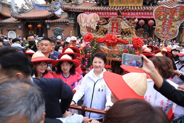 盧市長表示,樂成宮媽祖非常慈悲和靈驗,今日代表市府來恭送媽祖,特別向媽祖祈求三件事,第一、祈求台中市及台灣四時無災;第二、市民心想事成、闔家平安;第三、因緬甸、泰國大地震,祈求媽祖賜福世界平安。另此次遶境範圍大,她也呼籲信眾遵守交通秩序、注意安全,讓遶境順利。