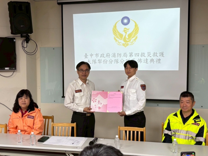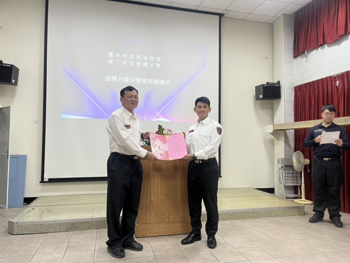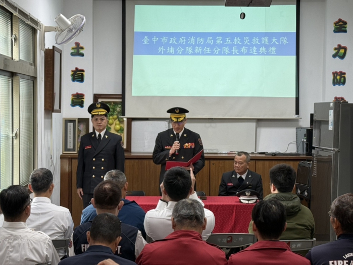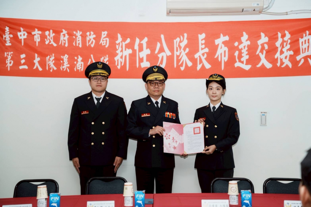 【記者許順德台中報導】台中市政府消防局1日為南屯、黎明、頭家厝、幼獅、協和、谷關、大安、犁份、春社、中區、溪湳、車籠埔及外埔等13個分隊舉行分隊長交接儀式,並同步晉陞10名小隊長,新任分隊長於1日正式報到,並由各轄區大隊長布達就任;女性幹部也脫穎而出,分別為第六救災救護大隊春社分隊新任分隊長施盈孜、第三救災救護大隊溪湳分隊新任分隊長許佳莉、以及第四救災救護大隊梧棲分隊新任小隊長黃詩涵,盼為消防團隊注入多元力量,共創新局。