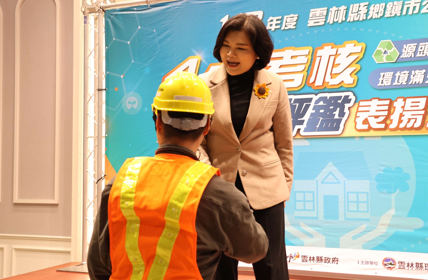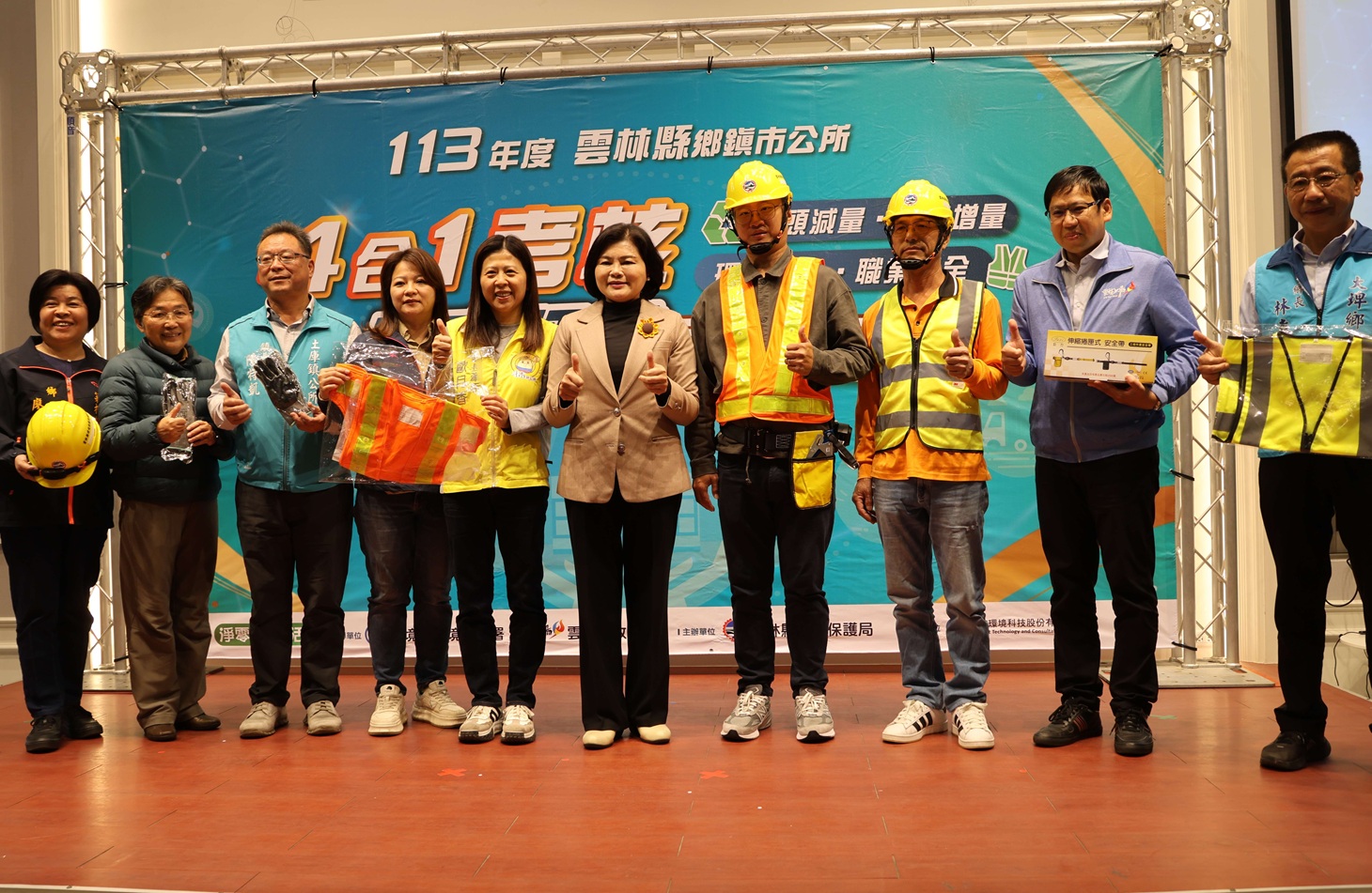 雲林縣環保考核成果表揚暨贈送清潔隊防護用品活動,各鄉鎮市首長皆蒞臨支持,共同為雲林潔淨家園努力。(圖/記者蘇峯毅攝)