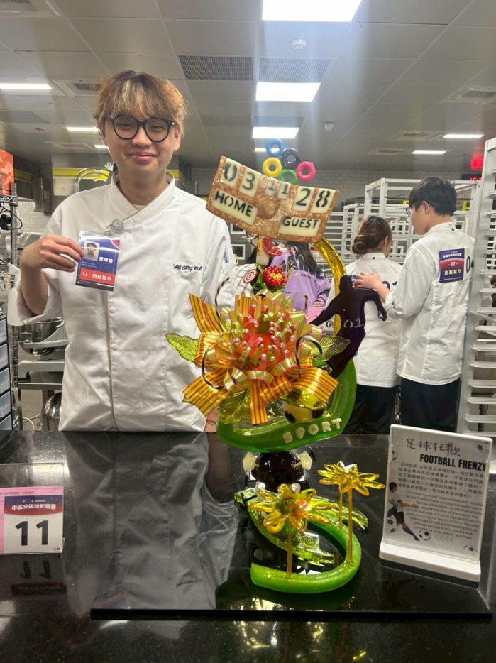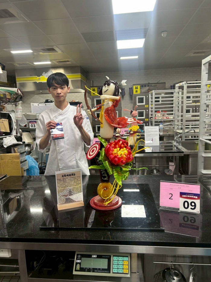 競賽不僅考驗選手的手藝,更重視創意與表達能力。中臺科大食科系烘焙團隊指導老師郭炯村與游隆宏強調,學生需從生活中取材,將個人理念轉化為作品,展現獨特風格。今年西點製作冠軍的唐靖懷同學,以「足球」為靈感,打造兼具層次與口感的甜點,呈現競技場上的熱血與團隊精神。亞軍顏誠均同學則以「職業棒球」為題,透過拉糖技術詮釋「勇於突破」的信念,並完美展現專業的視覺語言;此外,張博詠同學的「箭破邊關」,融合歷史意象與色彩設計,展現年輕世代的企圖心。
