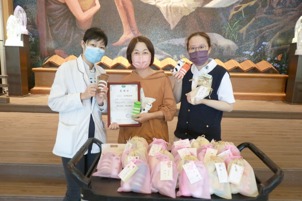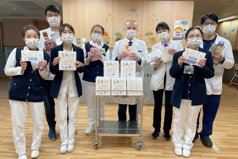「兒童節快樂!」李敏駿主任推著放滿禮物的車子來到兒科病房,將動物圖案的口罩與花園鰻手做娃娃送到小病人手中。曾經罹患癌症的手作老師吳素慧,自2015開始召集手做同好一起製作兒童節愛心禮物給兒科病房住院的小病人,今年呼應蛇年生肖,特別以受到小朋友喜愛的花園鰻為主題設計手做娃娃和餅乾,親自送到台中慈濟醫院,希望傳遞勇氣與祝福給小病人。支持兒童友善醫療的麥當勞叔叔之家基金會,也送來大人小孩兩款總計八十盒的動物圖案口罩到台中慈濟醫院社會服務室,以實際行動,關懷住院兒童與家屬。