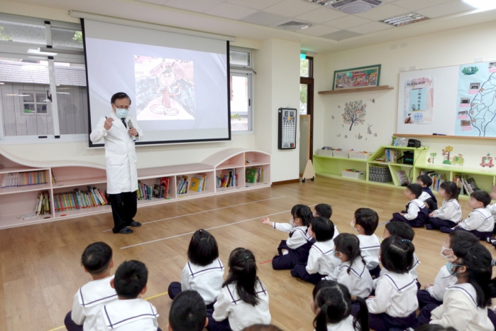 台中慈濟醫院院長簡守信受到臺中大愛幼兒園邀請,為五十位幼兒園小朋友說故事,簡院長透過繪本講述小孩從大魔王轉變小菩薩的故事,鼓勵小朋友做個人見人愛的小菩薩。簡院長表示,小孩的大腦可塑性非常高,運用故事結合圖像與他們家庭生活做連結,去啟發小孩對團體的規範,也可讓小孩省思發脾氣後帶來影響,學習自我的調整或改變。